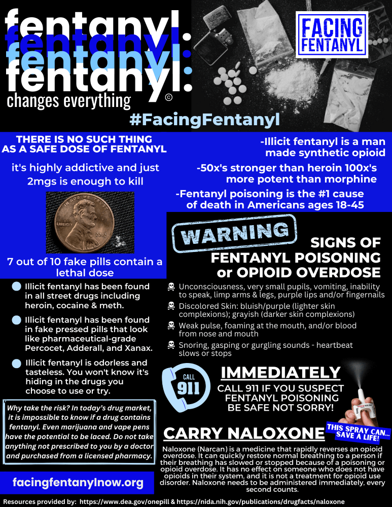 Naloxone resources – Learn how to recognize an overdose, how to administer Naloxone (Narcan), the importance of having it on your person, in your hose, or car, and why.